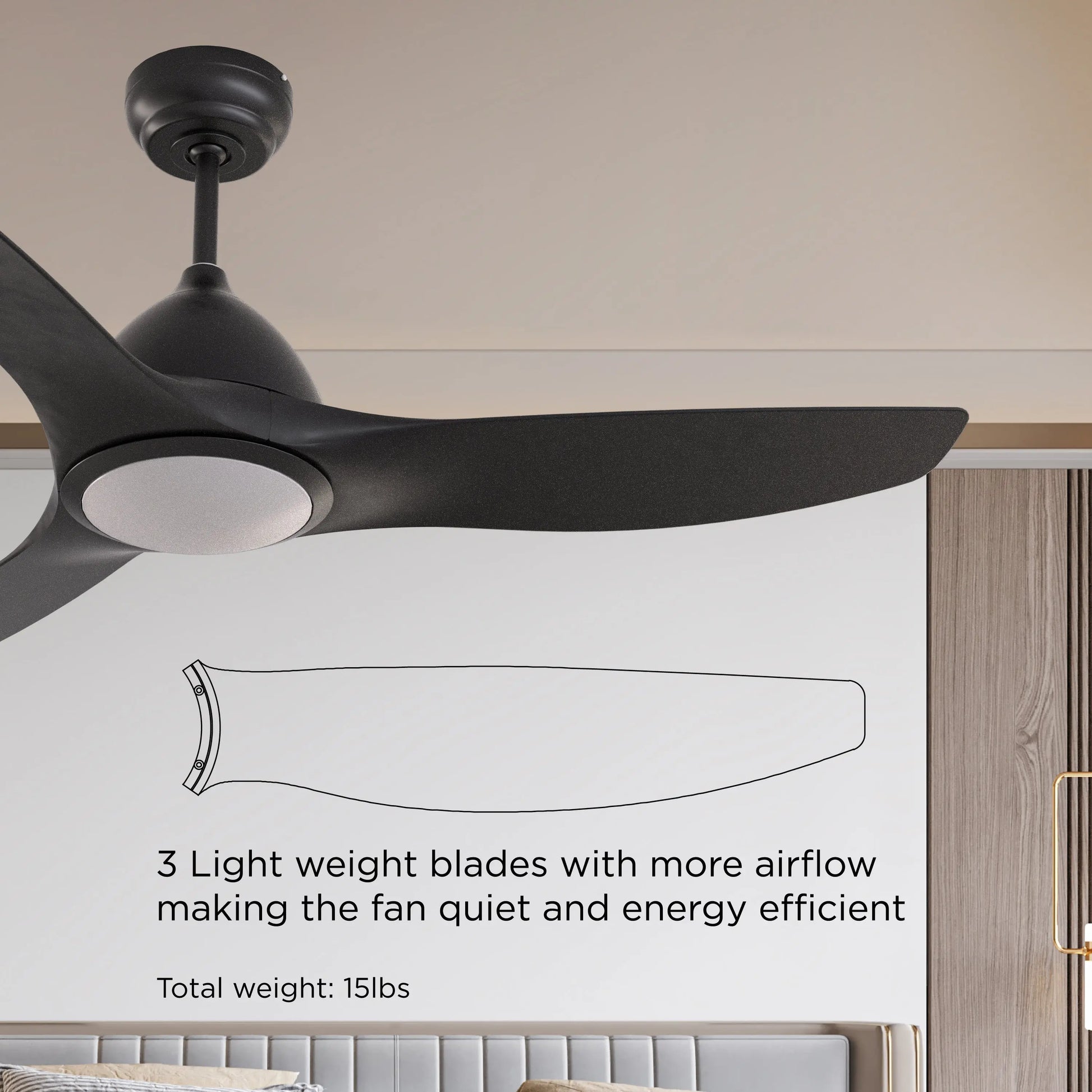 ProMounts 52 in. WIFI 3-Blade Smart Ceiling Fan with Reversible Motor, 6 Speeds and 3 Color Temperatures, App Control, Black